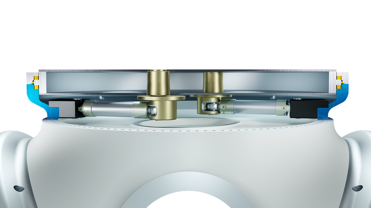Together with HAWE Energy Solutions and ITH bolting solutions, a hydraulic pitch drive has been developed for a 10MW offshore project and integrated into the PBU, as shown schematically in the following figure.