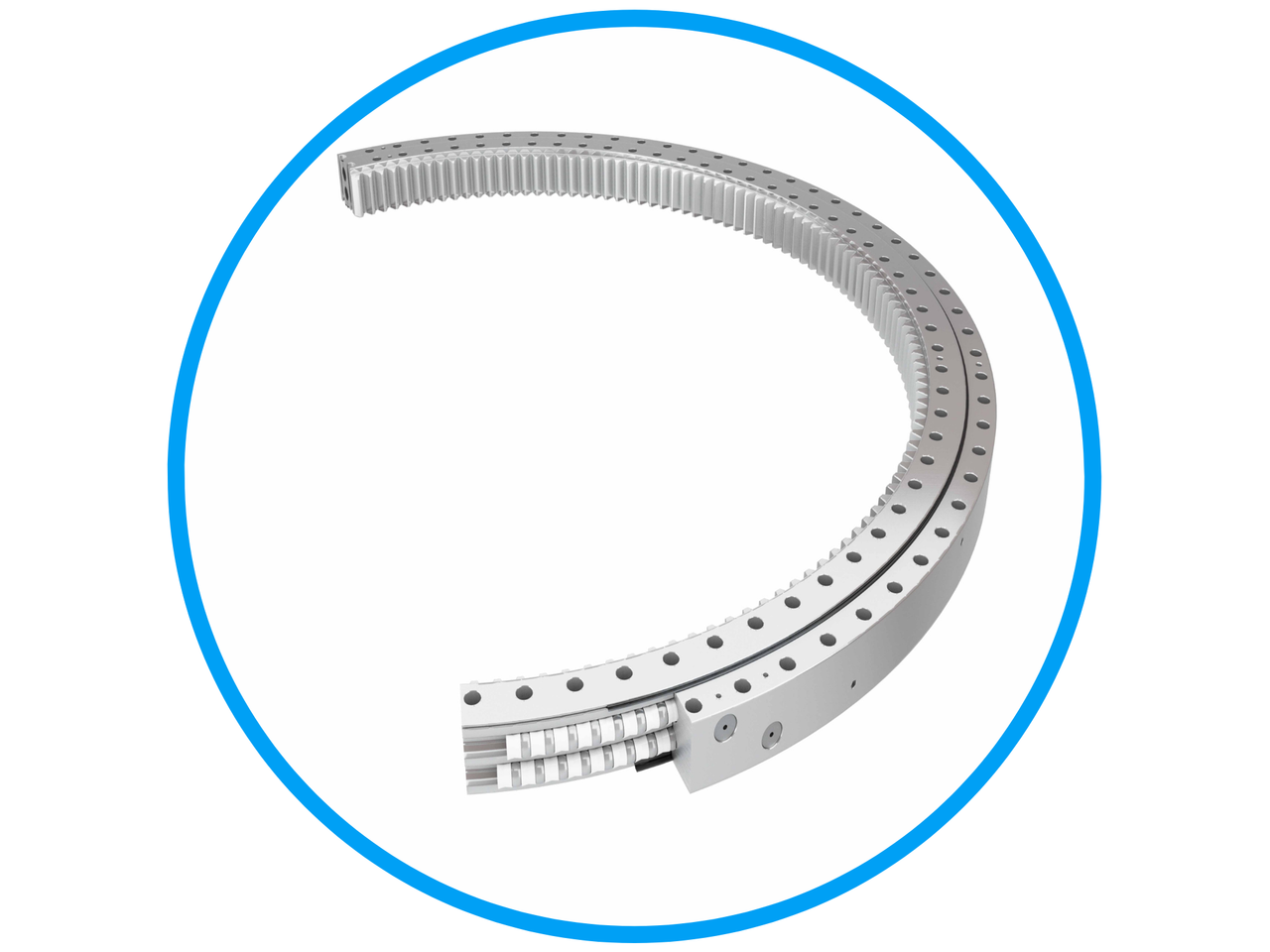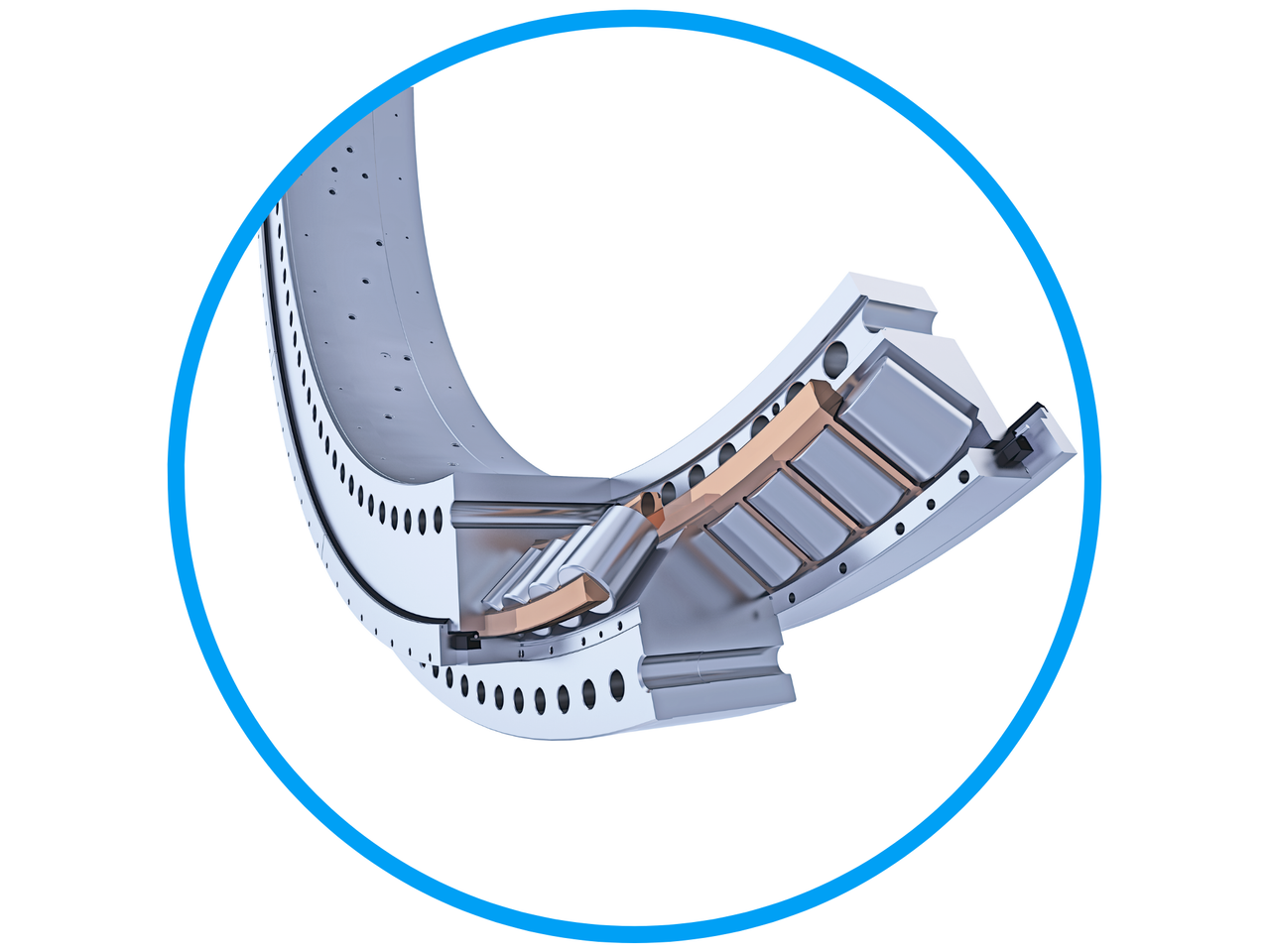 In this example, the extender bearing is a slewing bearing in the wind turbine, which combines the pitch bearing and a separate extender ring into one component.